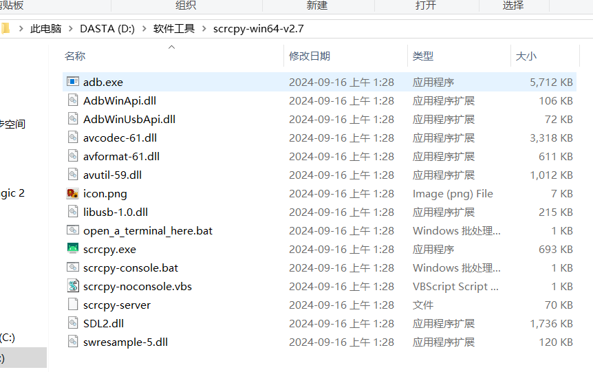 1.打开scrcpy的目录,在该目录下打开cmd窗口: