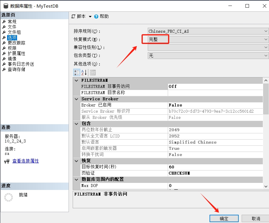 4:还原步骤二中恢复模式,将模式还改为完整。